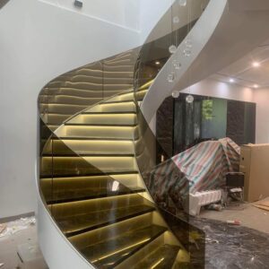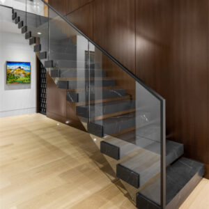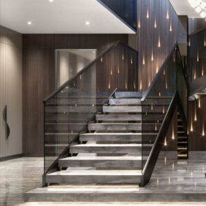 Luxury marble tread indoor staircase metal side beam straight staircase