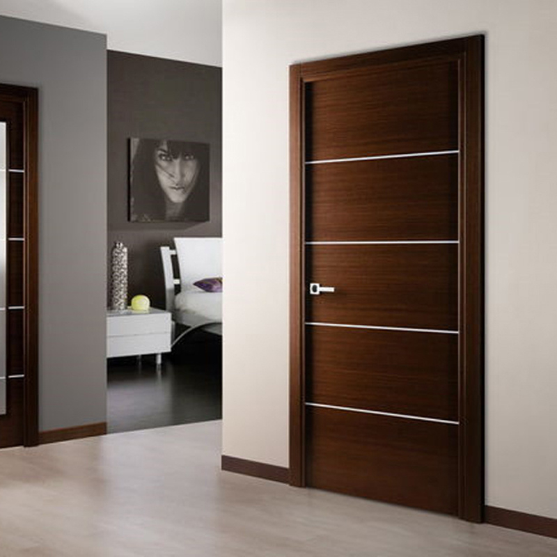 Apartment Hotel Solid Wooden Room Door Internal Wood Door With Aluminum Stripe