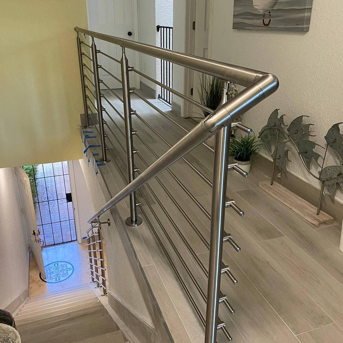 Rod Railing: A railing system made with metal rods (steel, iron, or aluminum) as the primary horizontal/vertical bars. Used for stairs, decks, balconies, or industrial spaces. Offers durability, modern/industrial aesthetics, and low maintenance. Common types include horizontal rod railings, vertical rod railings, and cable-rod hybrid systems.