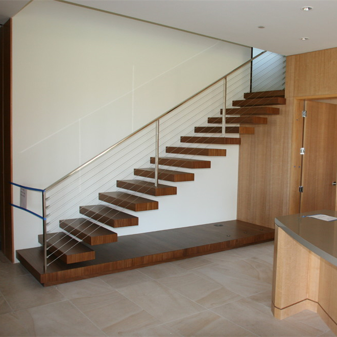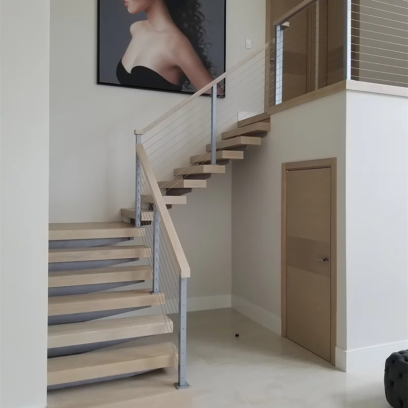 Cable railing indoor staircase build floating stairs