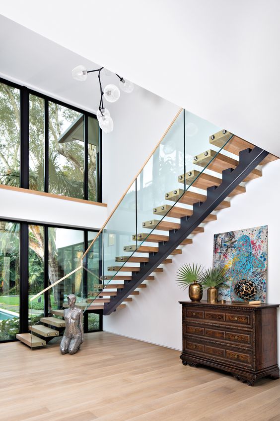 - Design: Emphasizes clean lines and open space, often paired with cable wire balustrades or glass panels for a sleek look.