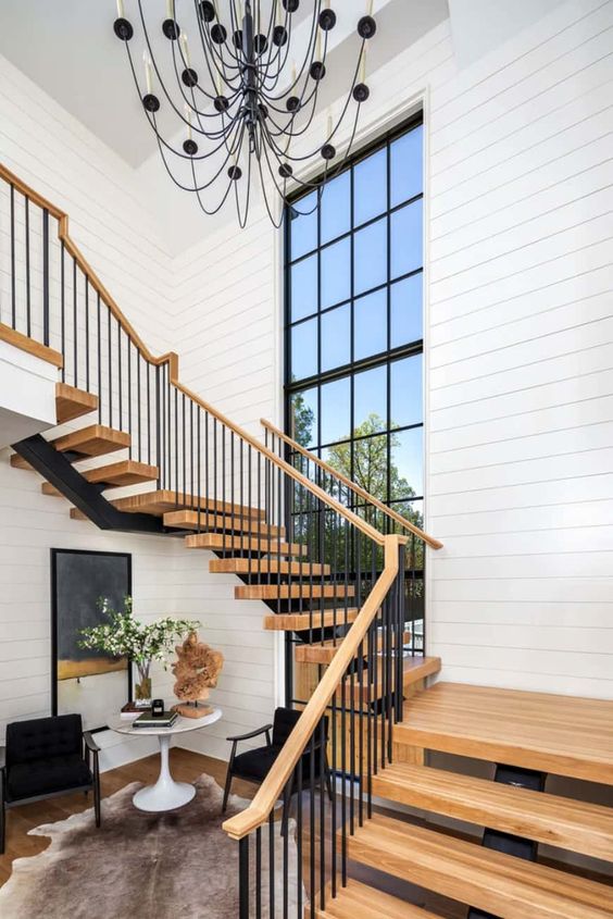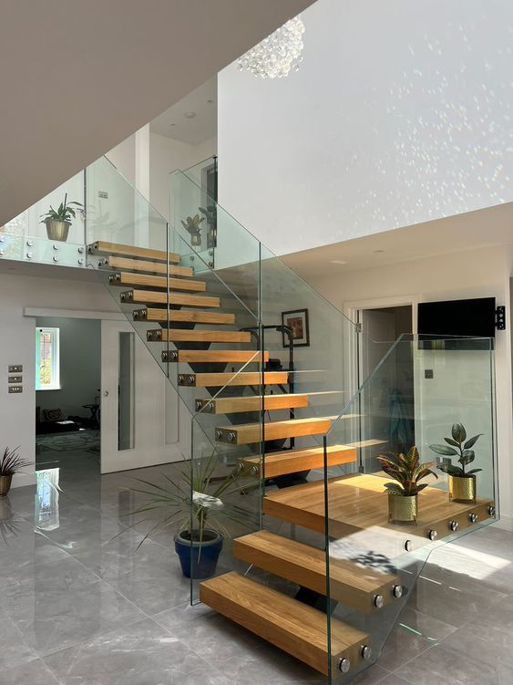 A mono stringer staircase is a modern architectural design characterized by a single central support beam (stringer) that runs along the staircase’s length.