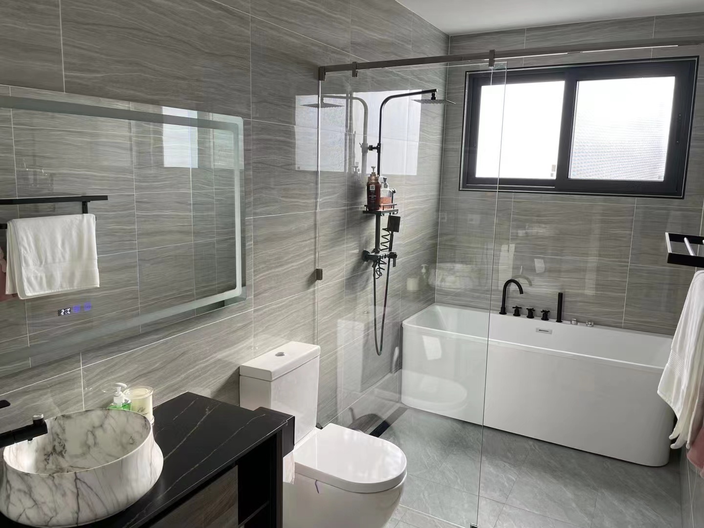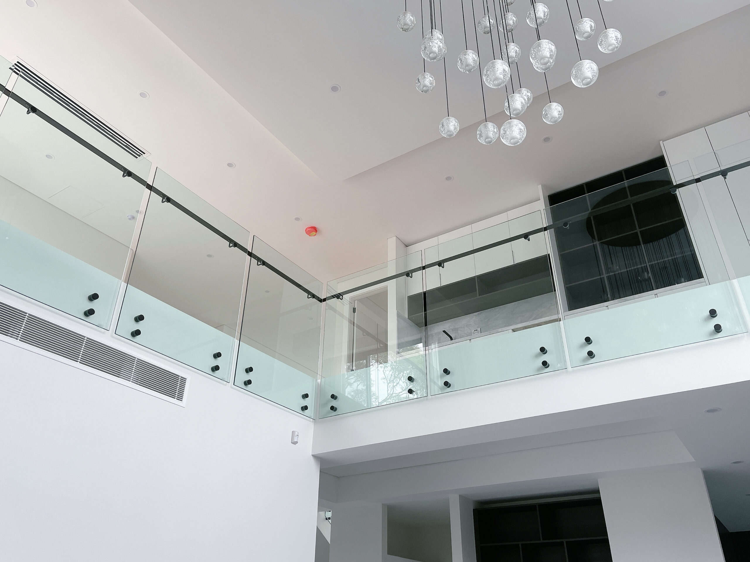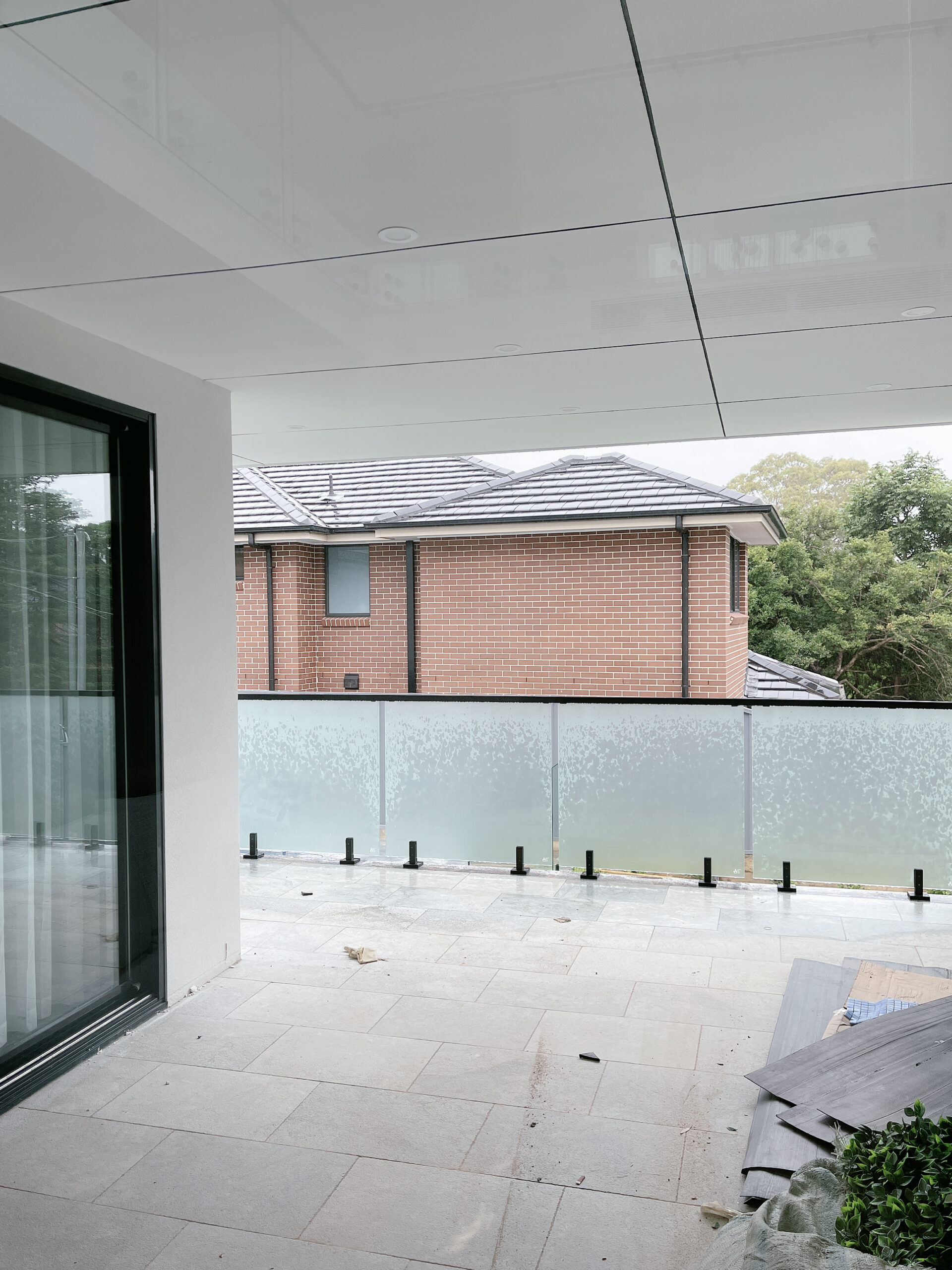 frosted glass blacony railing with powder coated square spigot and 28*30mm handrail