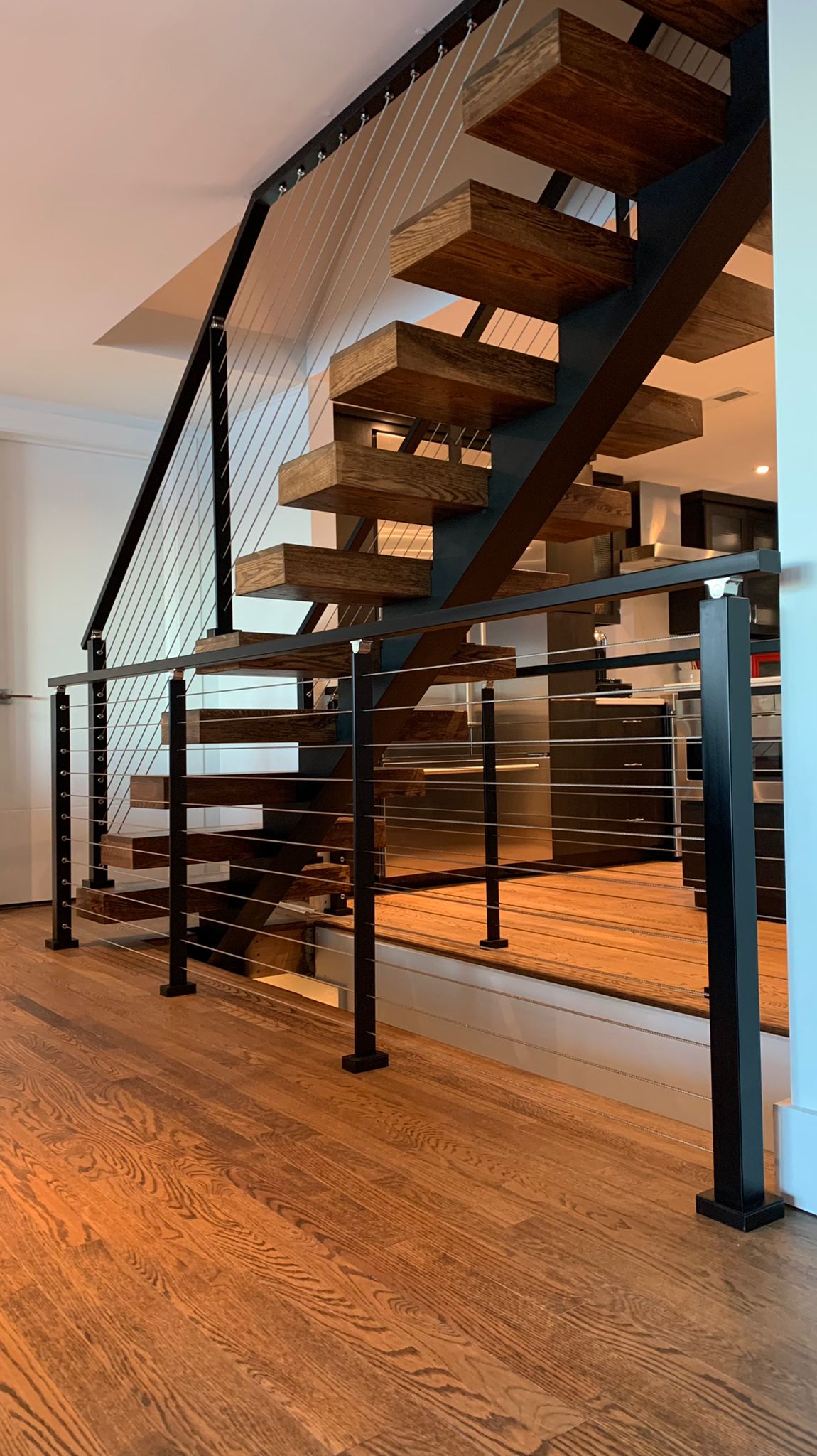 mono stringer indoor staircase with cable railing,client provide the cable himselves